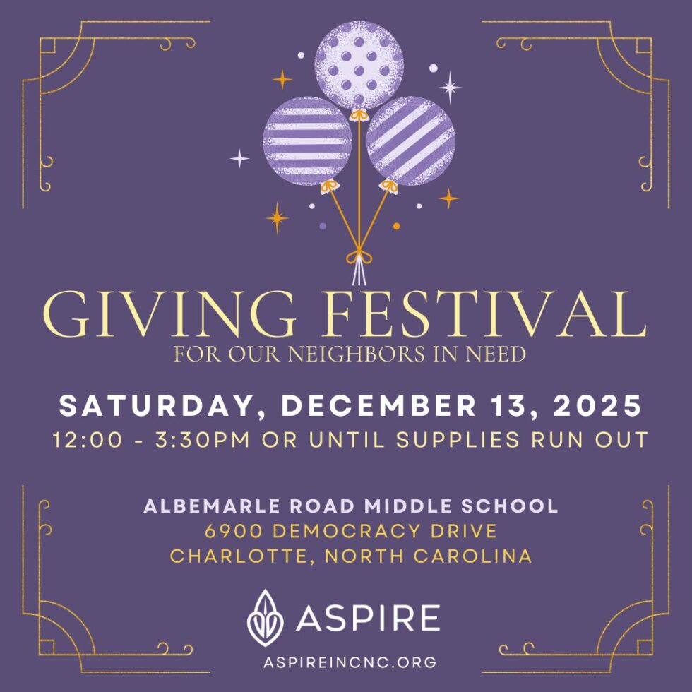 Join A.S.P.I.R.E. Inc. for a day of warmth, community, and holiday cheer! The Giving Festival is a free event for individuals and families in need, featuring hot meals, winter clothing, hygiene items, toys for kids, and access to local resources.